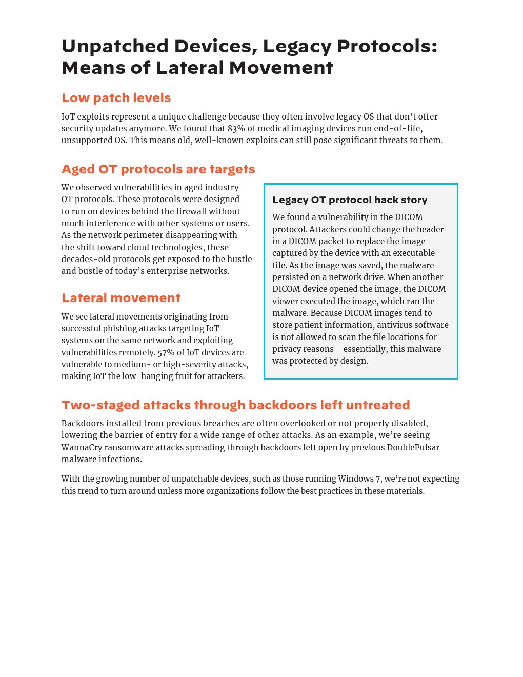 使用新技術對準物聯網設備的威脅正在演變。攻擊者認識到已有數十年歷史的遺留OT協議(如DICOM)的漏洞,并能夠中斷組織中的關鍵業務功能。