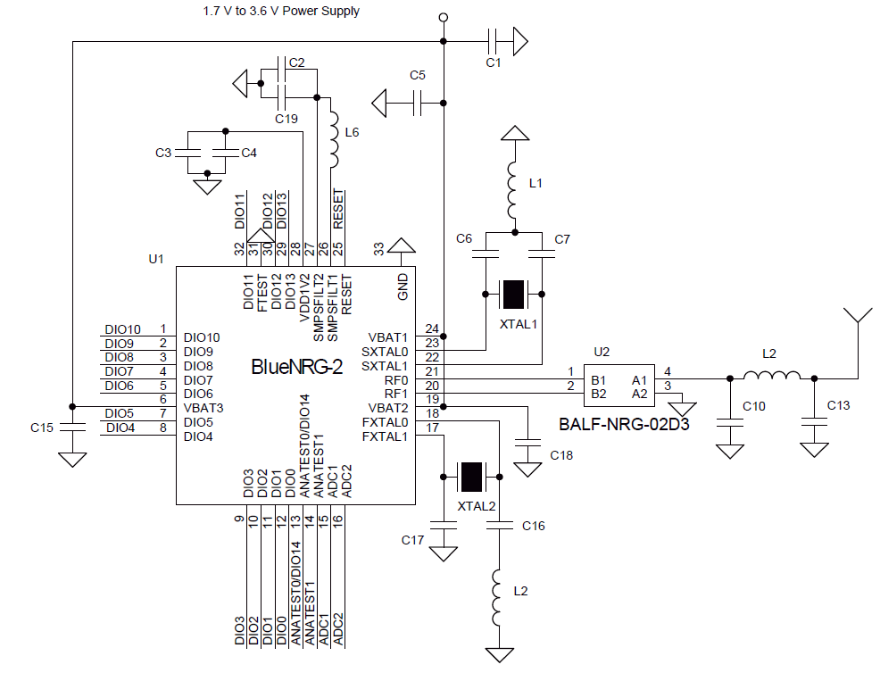圖1:BlueNRG-2 參考原理圖