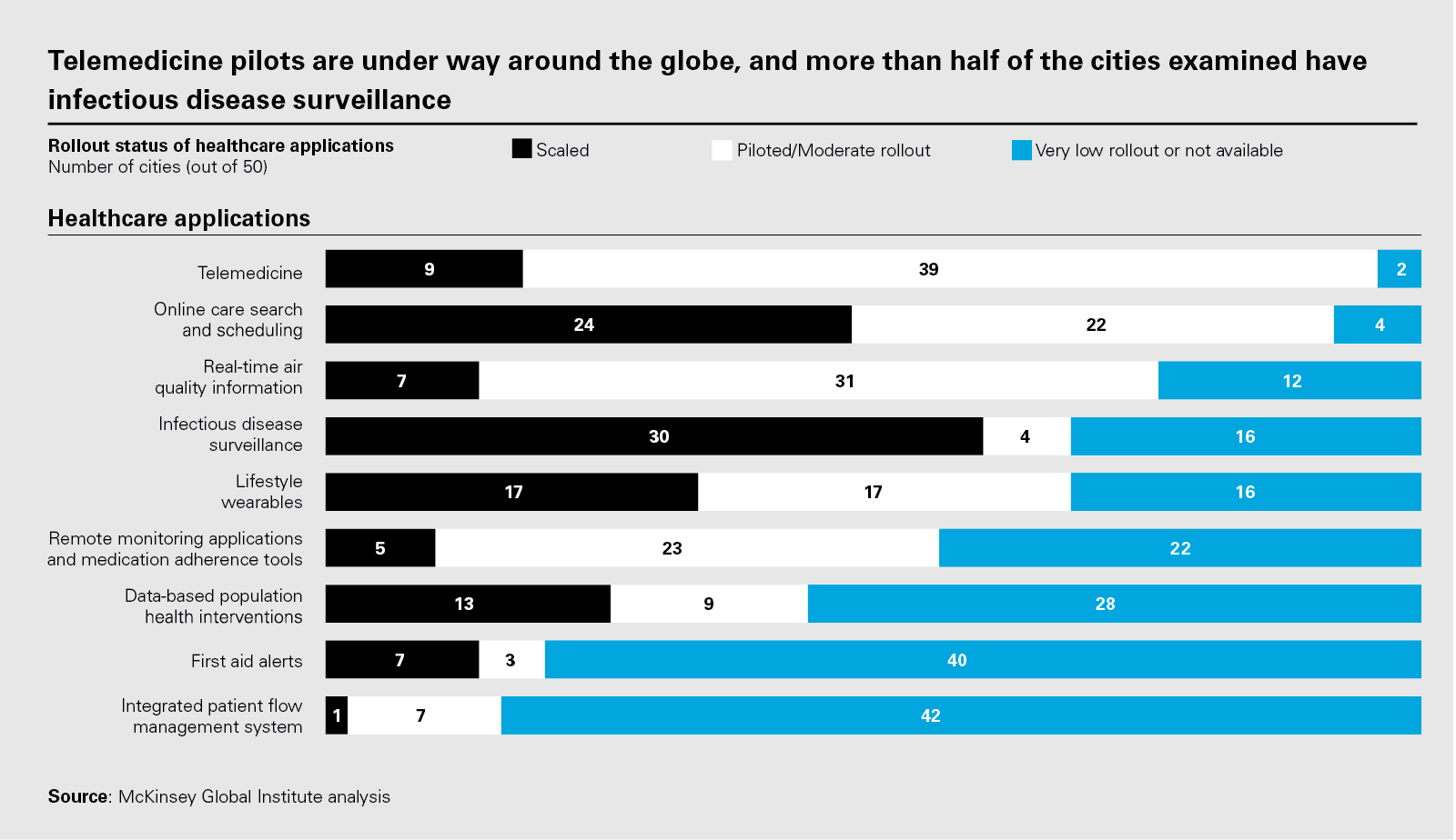 據麥肯錫發布的數據,遠程醫療正在全球范圍內進行廣泛應用,智能健康醫療應用非常廣泛,而且在全球大封鎖期間給人們帶來了極大的便利。