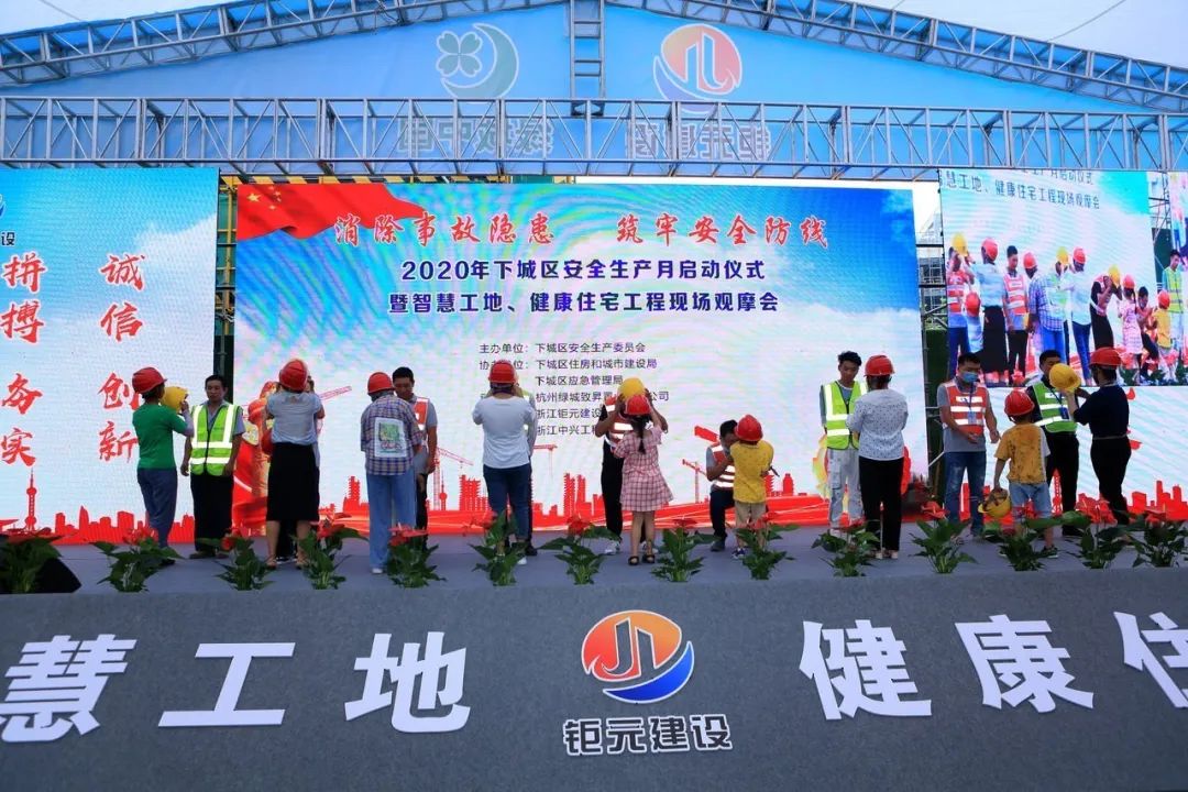 6月15日上午,2020年安全月啟動儀式暨智慧工地、健康住宅工程現場觀摩會活動在杭政儲出[2019]18號地塊住宅(設配套公建)用房工地現場舉行。市應急管理局、市建委、市質安監總站、區住建局、區應急管理局、轄區各街道和相關部門負責人,以及施工企業、監理企業、質量、安全管理部門負責人、在建工地建設、施工、監理單位等現場管理人員260余人參加活動。