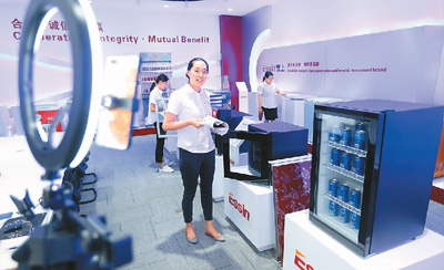 6月15日,為期10天的第127屆廣交會在網上開幕,這是中國首次完全以網絡形式舉辦的廣交會。廣交會按16大類商品設置50個展區,全部免收參展費用,幫助企業減負紓困,開拓國際市場。圖為6月15日,位于山東省青島市的青島營上電器有限公司,營銷人員通過廣交會直播平臺推介出口到非洲等海外市場的冰箱產品。