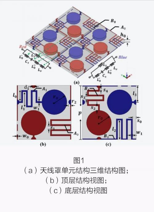 針對 5G 通信天線系統中信號入射角度超過 60 度就不穩定的科學難題,課題團隊提出一種基于全新的強電磁耦合頻率選擇表面(Strong Coupled Frequency Selective Surface, SC-FSS)理念的全角、全極化不敏感的高性能天線罩,結構如圖 1 所示。該結構由貼附于一層超薄介質上下表面的兩金屬層結構組成。該 SC-FSS 概念依托于電路物理學理論,突破了傳統基于波動物理學的 FSS 角度不穩定的瓶頸,彌補了過去十年間角度穩定研究唯小型化理論的不足。