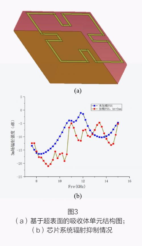 在 5G 通信芯片系統中,封裝蓋 / 散熱器與芯片封裝基板之間很容易形成諧振腔。而為了給電路系統中的線纜、元器件提供足夠的空間,通常在封裝蓋 / 散熱器與芯片封裝基板之間留出一些縫隙,這使得電磁輻射可能通過這些縫隙泄露出去,從而導致輻射超標。常用的解決辦法是破壞原有的諧振條件,或者吸收損耗這些噪聲能量,因此電磁帶隙(Electromagnetic Band Gap, EBG)結構和吸收體結構是合適的選擇。在芯片系統中,如何實現 EBG 結構和吸收體結構的小型化、提高它們的吸波性能是亟待解決的問題。