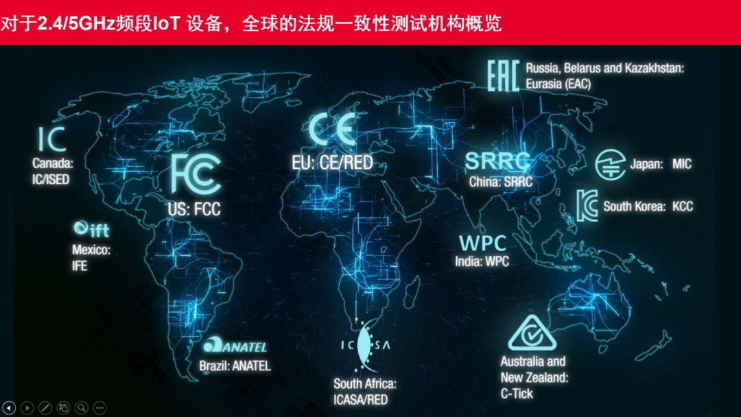 物聯網終端設備,作為無線電設備的一種,同樣需要經過各個國家監管機構的許可才能進入那個國家的市場,無論這種設備是在哪里生產的。總的來說,這種法規一致性測試時比較復雜的,各個國家或地區有不同的要求。例如,中國的測試要求可能與加拿大或韓國的測試要求就不一樣。