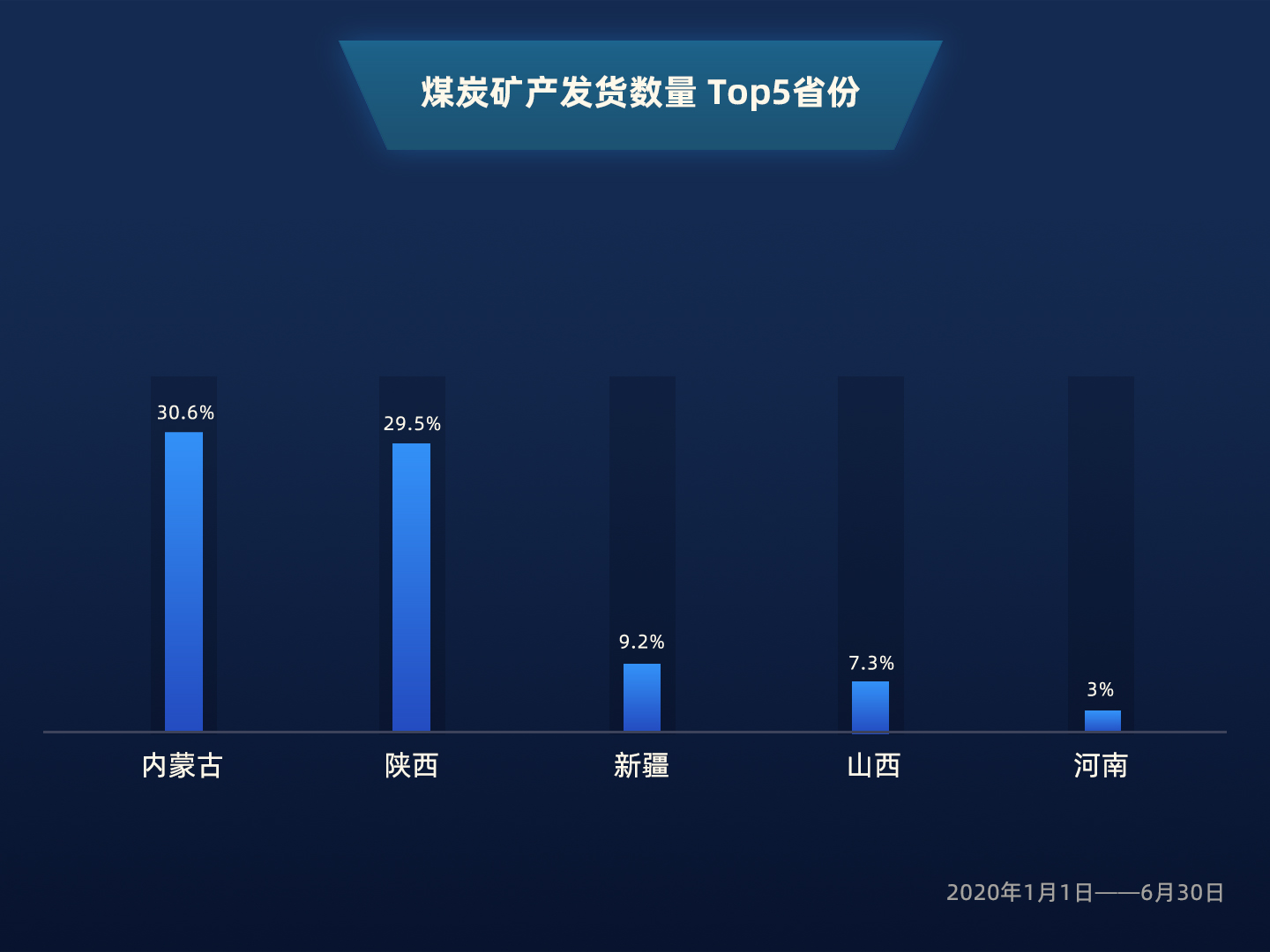 作為保障能源供應的重點貨物,煤炭礦產也是公路貨運中非常重要的品類。上半年,受疫情影響,部分地方政府對人員、車輛流動進行了不同程度的調控,導致煤炭公路運輸受到影響。滿幫貨運平臺數據顯示,1至6月,煤炭礦產類發貨量與去年同期相比下降7.6%。從煤炭礦產的發貨數量來看,產業依然在資源富集地區集中,山西、內蒙古、陜西和新疆,這四個省份原煤產量占全國76.8%,發貨數量也穩居前四,持續將優質產能向全國釋放。