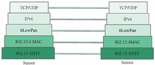 在IEEE 802.15.4網絡中運行IPv6協議的主要挑戰來自于兩個方面,一方面802.15.4物理層支持的最大幀長度是127字節,而IPv6的報頭就占據了40字節,再加上MAC層報頭,安全報頭、傳輸層報頭的長度,實際能夠給應用層使用報文長度變得非常小。另一方面,IPv6協議(RFC2460)中規定的MTU值最小是1280字節,表明IP層最小只會把數據包分片到1280字節。如果鏈路層支持的MTU小于此值,則鏈路層需要自己負責分片和重組。所以,6LowPan工作組為IEEE 802.15.4設計了一個適配層,把IPv6數據包適配到IEEE 802.15.4規定的物理層和鏈路層之上,支持報文分片和重組,同時6LowPan規定了IPv6報頭的無狀態壓縮方法,減小IPv6協議帶來的負荷。6LowPan工作組的工作在低功耗節點協議棧中的位置如圖1所示。