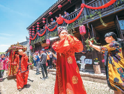 今年5月,第十八屆徐霞客開游節在浙江省寧波市寧海縣開幕,超2.2億元“浙江文旅消費紅包”線上發放,消費者在手機外賣軟件上領取后,可以線下參加相關活動。 章勇濤攝(人民視覺)
