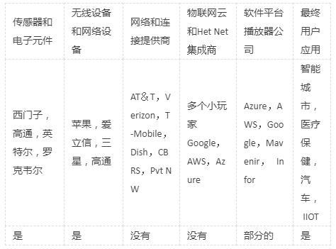 為了使物聯網商業化,需要將堆棧的多個層次放在一起(如下表所示)。這帶來了集成挑戰。