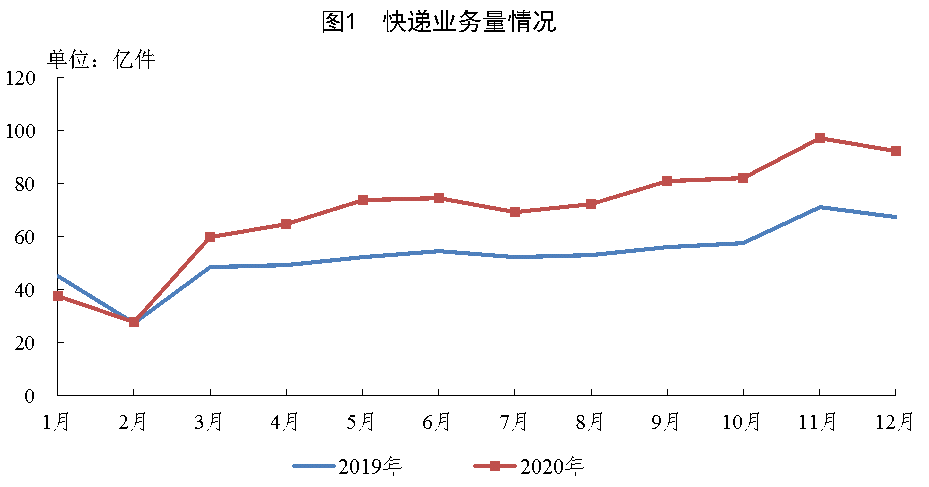 根據1月14日,國家郵政局公布2020年郵政行業運行情況。2020年,全國快遞服務企業業務量累計完成833.6億件,同比增長31.2%;業務收入累計完成8795.4億元,同比增長17.3%。