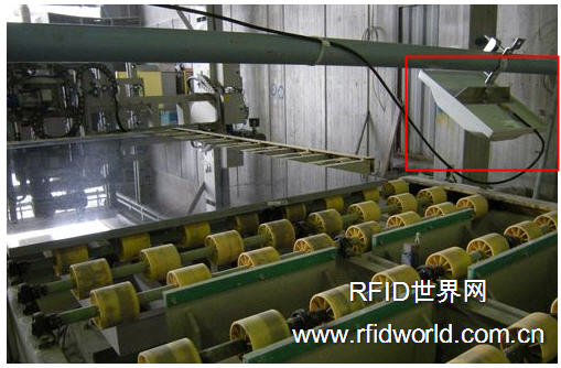 在工廠切割機,一支定位 RFID 天線收集石塊 EPC Gen 2 標簽的 ID 碼