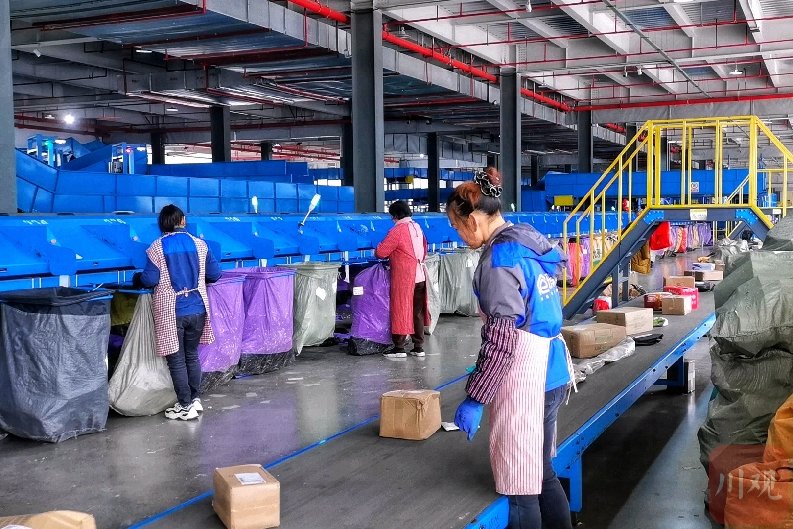 瀘州電商快遞分撥中心一片繁忙景象。郭蕎璐 攝