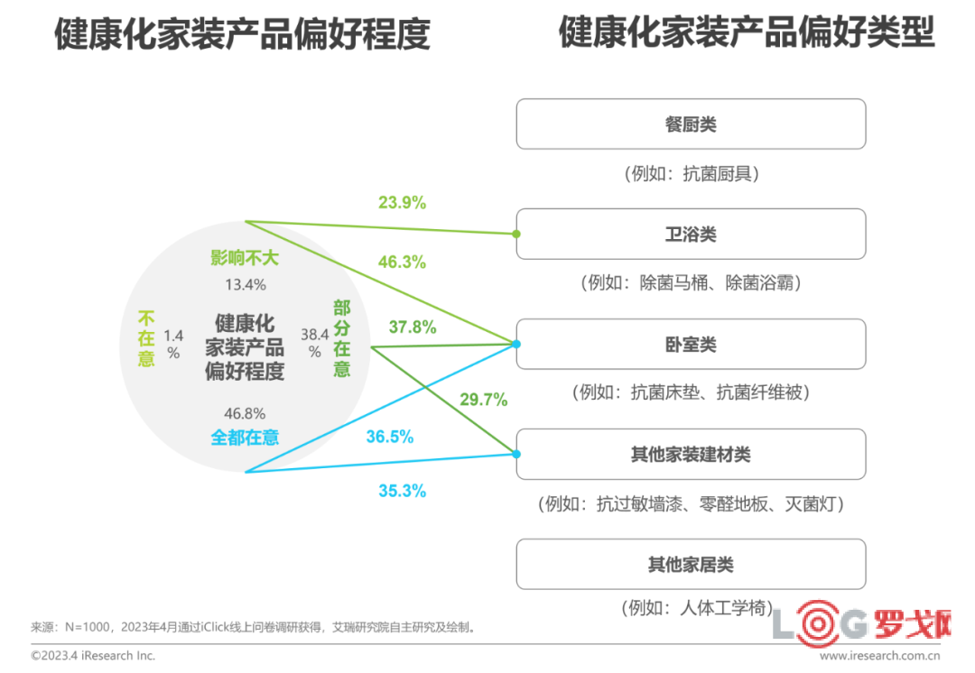 絕大多數用戶都傾向于健康化家裝產品,主要是出于家人健康考慮,人們最在意臥室類家裝產品是否具備健康化屬性