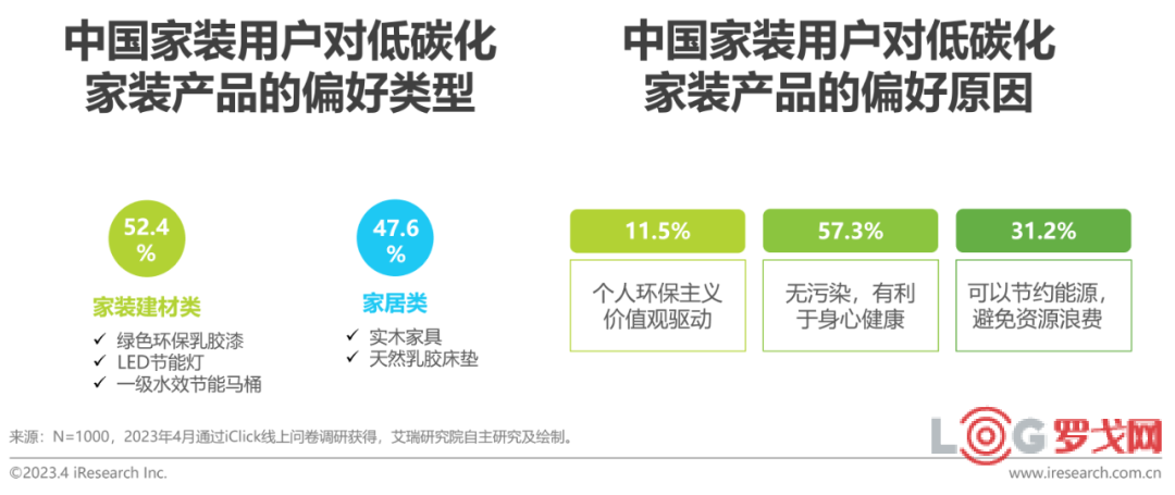 超70%的用戶傾向于低碳化家裝產品,因為該類產品清潔無污染或可節約資源
