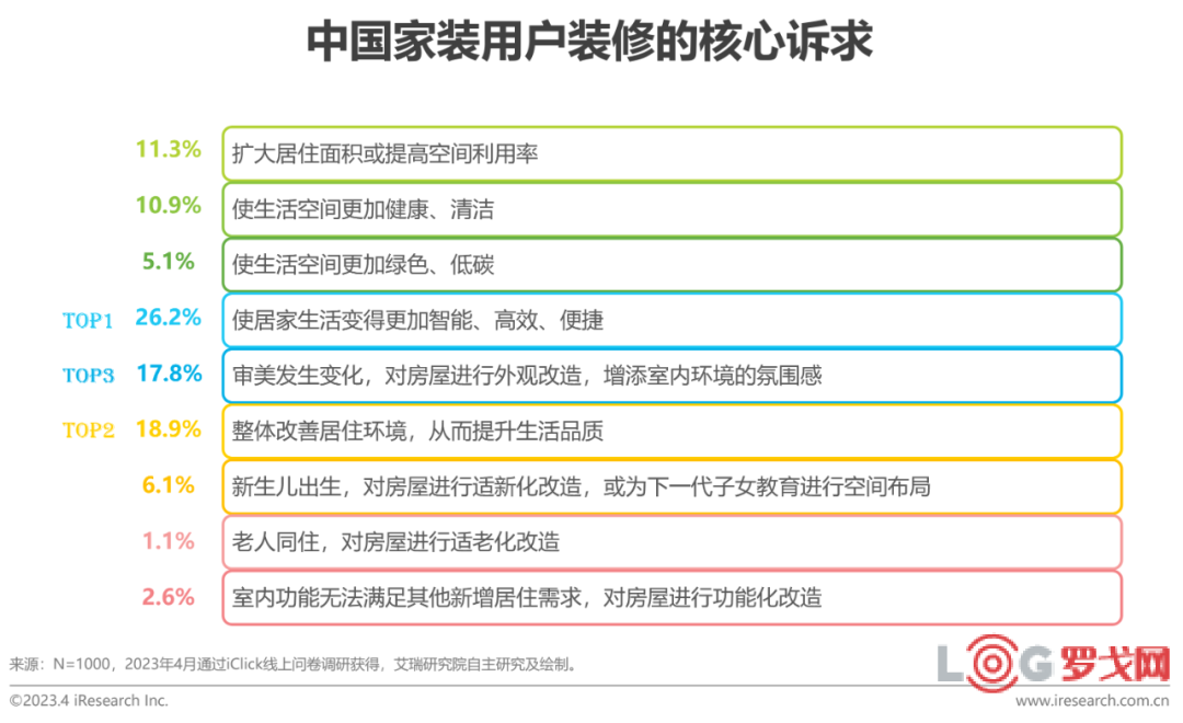 6、中國家裝用戶的裝修訴求及空間偏好