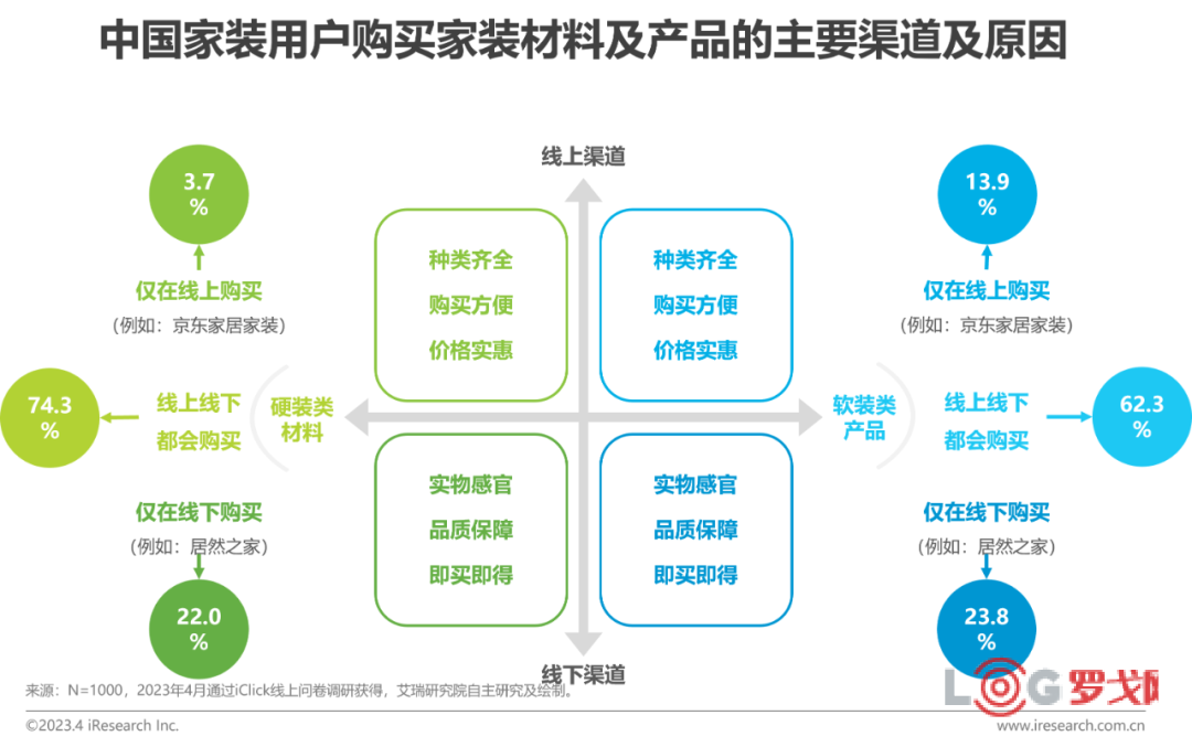 無論是硬裝材料還是軟裝產品,大部分消費者并非只是通過單一的線上或線下渠道進行選購,而是傾向于線上線下相結合的方式。線下可以看到實物,對產品的外觀、材質等能夠形成直觀感受,同時產品具備品質及售后保障,且通常為同城購買,可以做到即買即得;而線上渠道產品種類齊全、購買方便,消費決策可以不受時空限制,同時價格實惠,可以做到輕松比價。