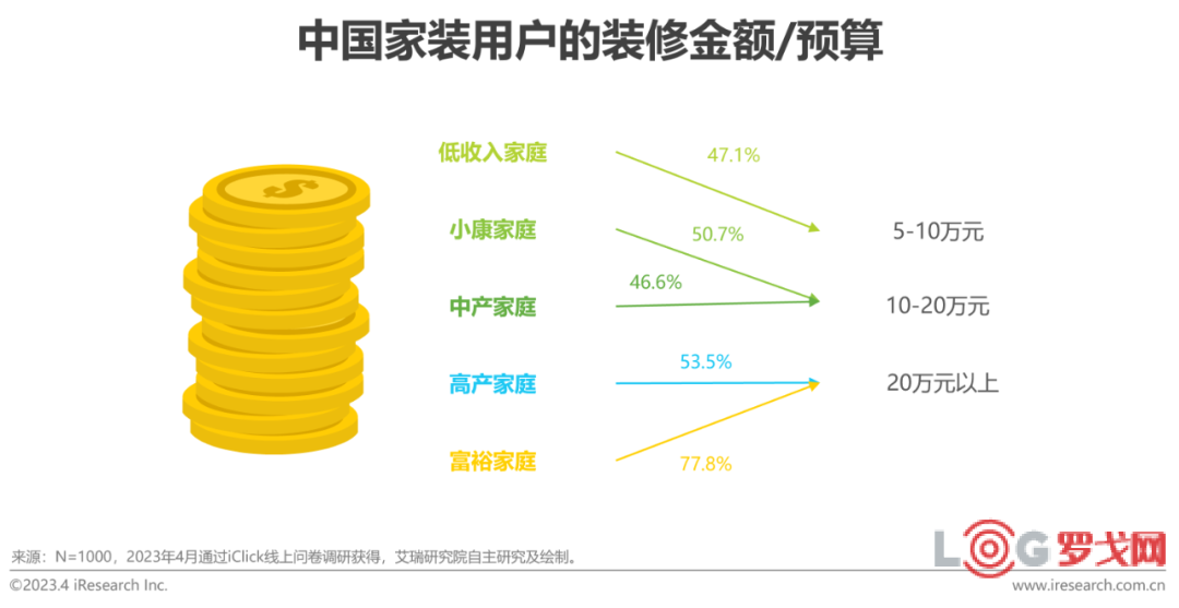 裝修需求主要為增量房初次裝修,大部分家庭房屋面積位于中等水平,家裝金額或預算與家庭收入基本呈正相關