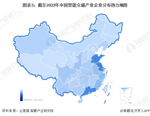 智能倉儲產業鏈區域熱力地圖:山東、江蘇和廣東地區分布最集中