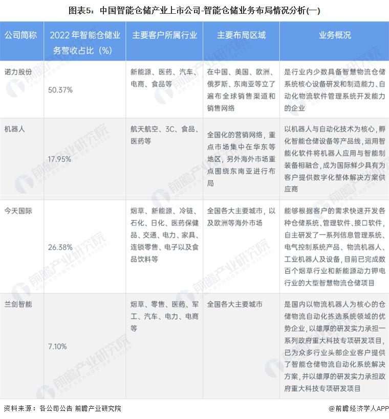 智能倉儲行業上市公司智能倉儲業務布局對比