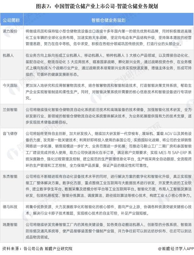 智能倉儲行業上市公司智能倉儲業務規劃對比