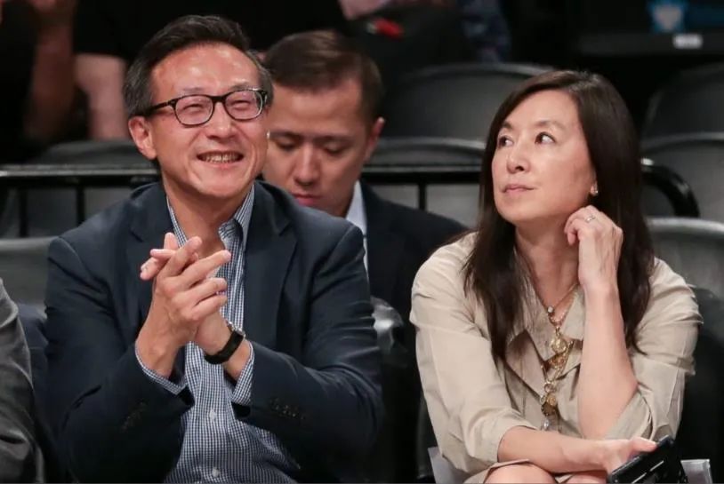 觀看籃網隊比賽的蔡崇信、吳明華夫婦