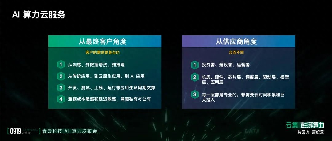 第三,有些云廠商自己也做大模型,青云科技不做,而是深耕AI算力調度平臺。面對新的AI應用需求,大家需要很多技術積累、技術迭代,這特別像2013年的云時代。
