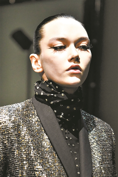 記者留意到,近年的時裝潮流總有不斷回潮的趨勢,本季的金屬風格也是其中之一。作為2023~2024秋冬流行主色系,金屬色本身就擁有強大的力量,耀眼、張揚、外放。“想起金屬風格,更多人第一印象會落在搖滾風、迪斯科風上,事實上它作為時裝元素來說,一直以來都在被大牌設計師們靈活運用著。”新銳時裝設計師蔣宇告訴記者,比如愛馬仕就很喜歡選擇低調的金屬質感與皮革材質混合,設計師風衣、外套、連身裙等。而LV、GUCCI相對而言會更外放一些,直接在輕禮服裙、西裝外套、夾克衫上大面積使用金屬元素,或面料或裝飾,綜合設計出更具有戲劇感的時裝。