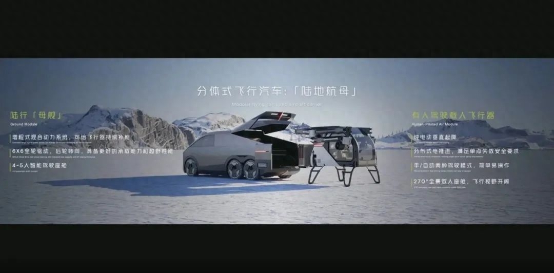 何小鵬還特別強調,該產品的陸行體為一輛六輪六驅的增程式汽車,且具有補能能力和很好的越野能力。