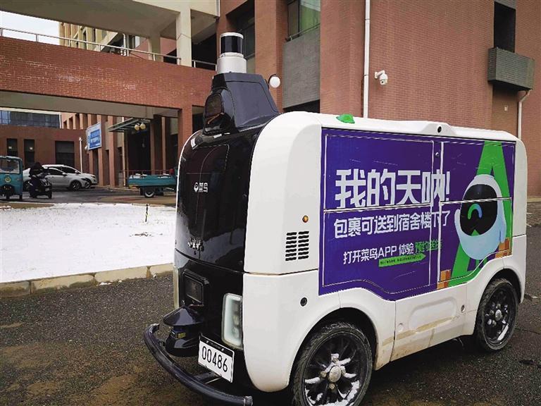 王佳偉介紹,無人車單趟設計約50件快遞,平常每天來回四趟,配送快遞200件左右。裝著快遞的無人車按照規劃路線行駛在校園主干道,按照約定時間和地點,為師生提供送貨上門服務。無人車極大方便了校園內同學們的取件,也為同學們利用碎片化時間取件提供了很大的便利。