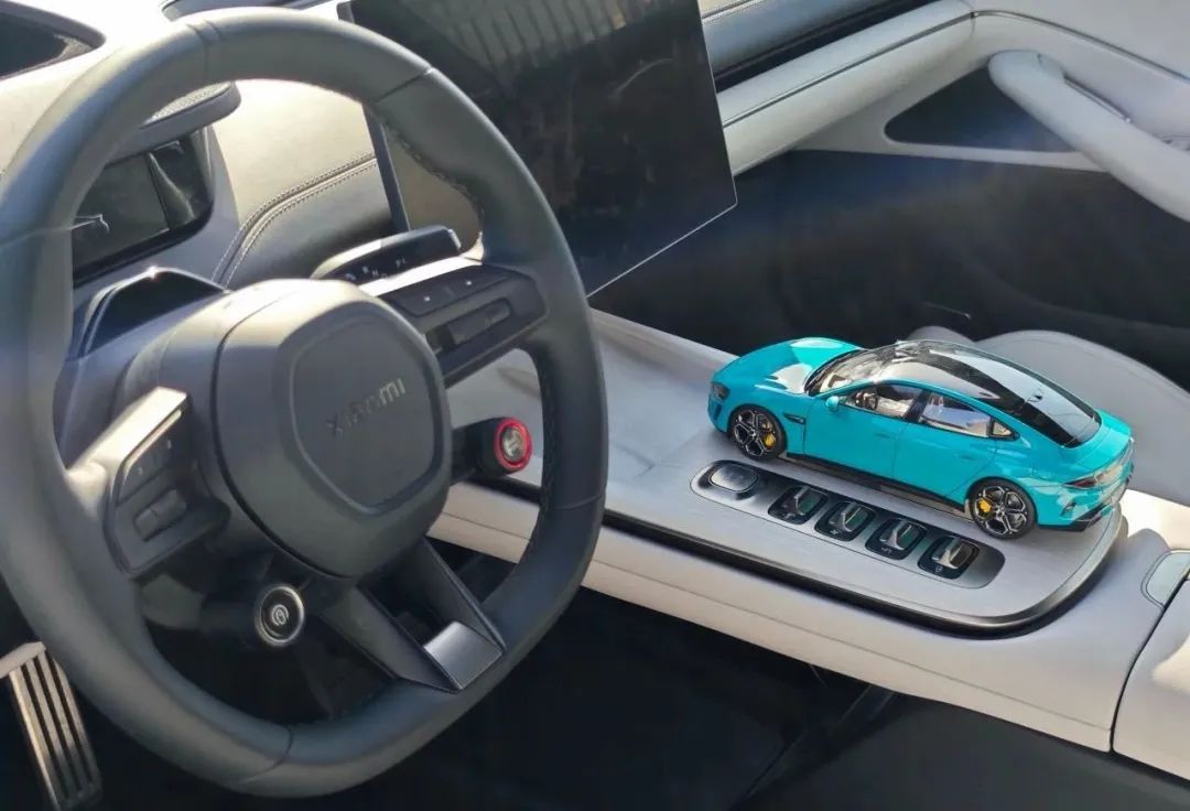 ▲ 小米SU7 1:18合金車模與小米SU7。圖 / 小米汽車官方微博