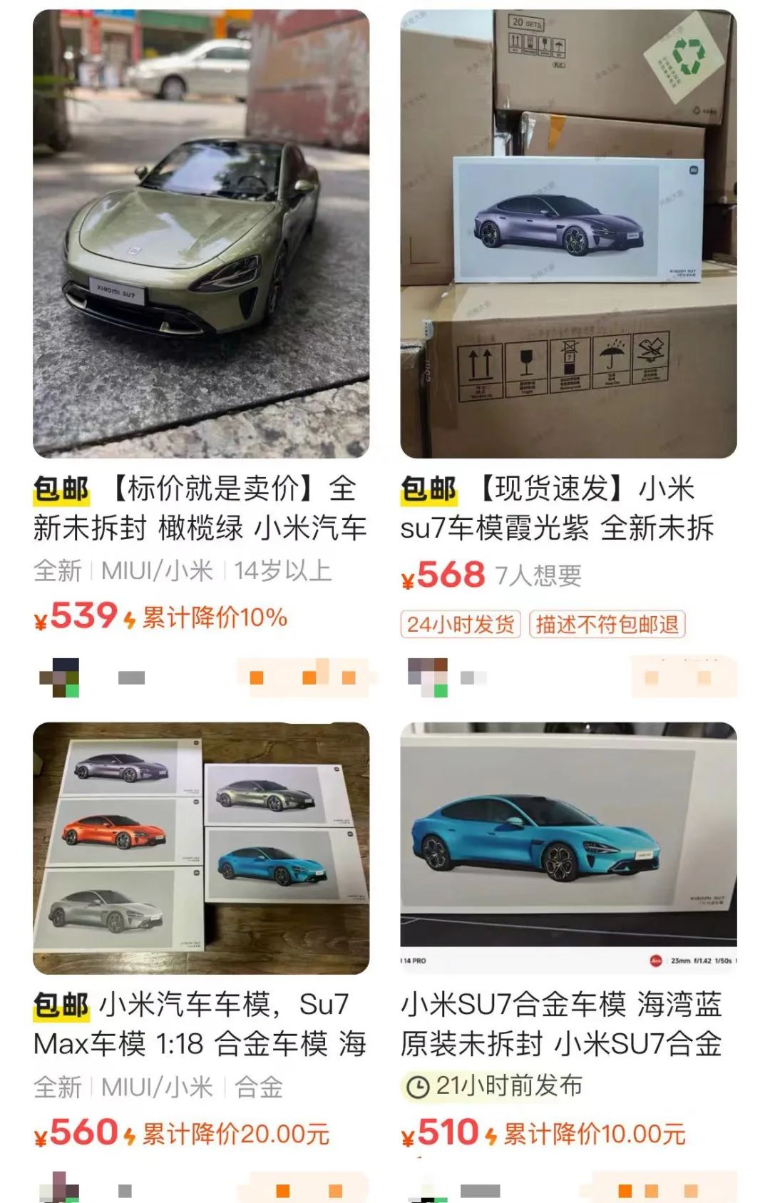 3月份小米SU7模型首次上市時,在眾多二手交易平臺上,其價格被炒成了“天價”。官方售價499元的模型,被炒到了999元、1999元,標價更高的甚至還有3999元。相當多的網友調侃道,“買不起真SU7買個模型還不行嗎?還真不行,連模型都已經買不起了。”也有不少網友質疑,標價千元以上屬于有價無市,“又不是限量款,雷軍說了之后會補貨的”。