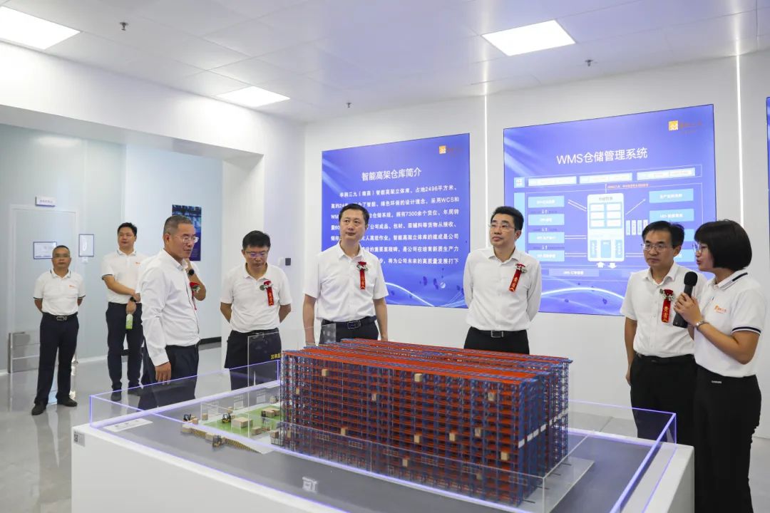 隨后,與會領導一行參觀了華潤三九(南昌)智能高架立體庫項目。據了解,華潤三九(南昌)智能高架立體庫項目,占地2496平方米、高約24米,融合了智能、綠色環保的設計理念,采用WCS和WMS集成的最新智能倉儲系統,擁有7300余個貨位,年周轉量60余萬件,實現了公司成品、包材、原輔料等貨物從接收、儲存、出入庫的無人高效作業。此次落成投產的化藥液體生產線及智能倉儲項目將為青山湖區醫藥產業轉型升級、戰略性新興產業發展壯大作出示范引領,也為我們深入實施項目帶動戰略、大力推進數字化轉型提供了范例、打造了樣板。