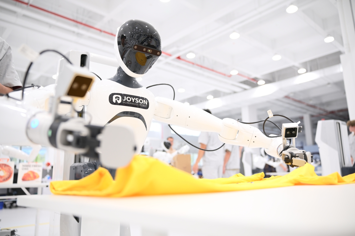 機器人展示疊衣服。孫佳駿 殷聰攝