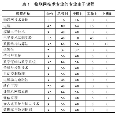 表 1 物聯網技術專業的專業主干課程