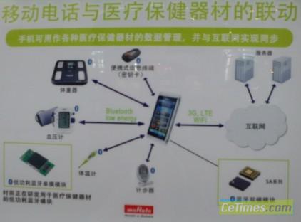 值得注意的是村田展出的一款低功耗藍牙模塊,工作時功耗為普通藍牙模塊的30%左右,待機時僅為普通藍牙模塊的千分之一。