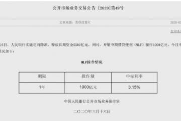 3月16日,中國央行公告稱,實施定向降準的同時,開展中期借貸便利(MLF)操作1000億元,期限為1年,操作利率3.15%,與上次持平。(圖片來源于央行公告)對于后續貨幣政策走向,...[詳細]