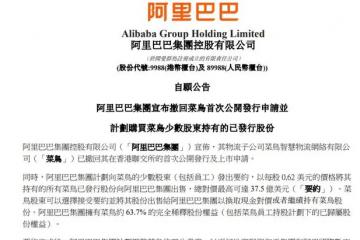 阿里停止云業務分拆、盒馬IPO暫緩后,阿里巴巴資本運作再生變,菜鳥宣告撤回赴港IPO。[詳細]